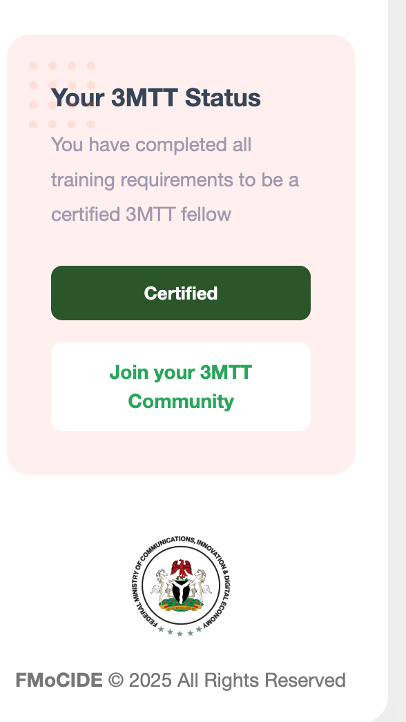 👉 Please log in to your 3MTT dashboard and join your Cohort WhatsApp group immediately by clicking Join your 3MTT Community.